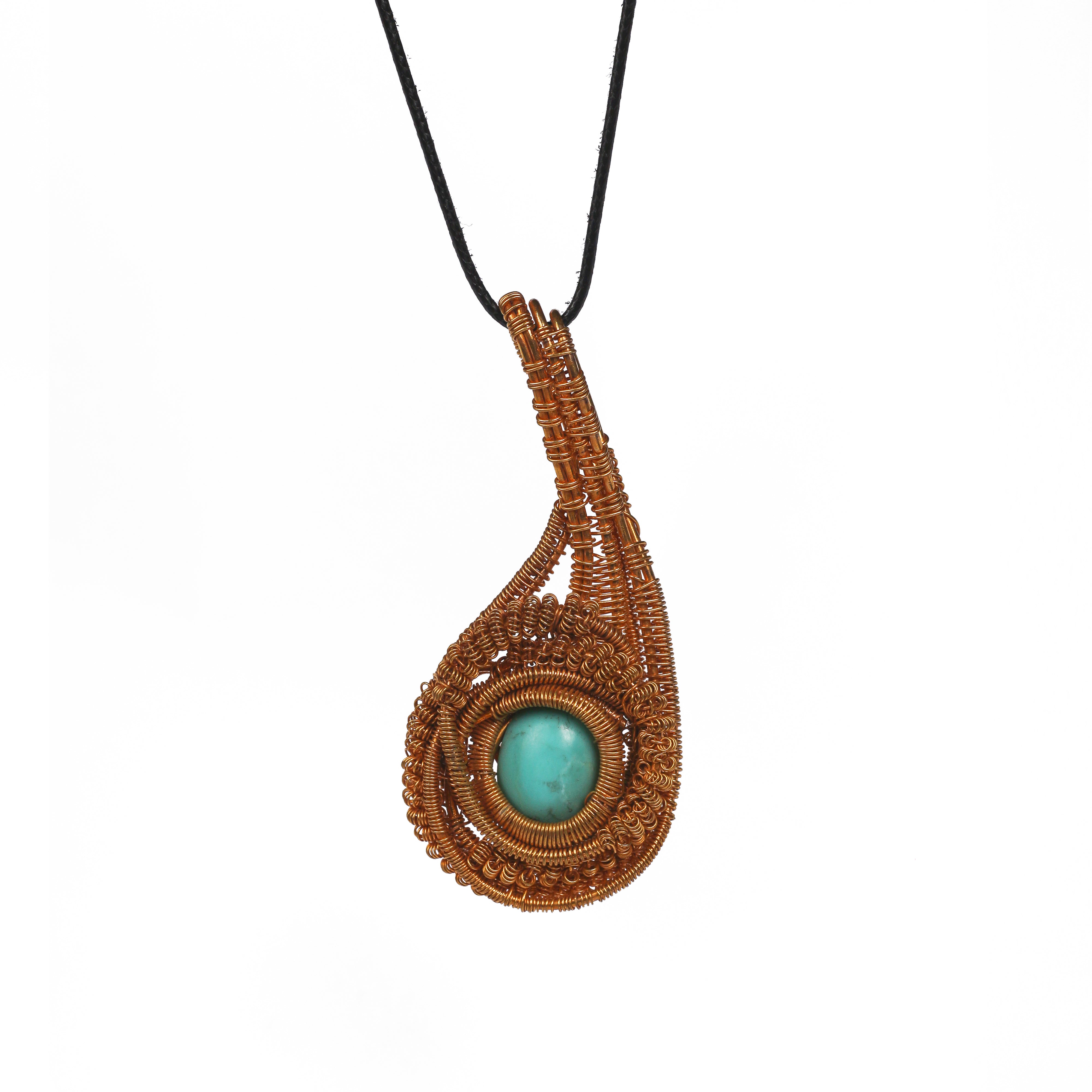 The Feroza gemstone is delicately wrapped in fine wirework, creating an intricate and unique design that enhances the stone’s natural elegance. Its soothing color is reminiscent of tranquil waters and is believed to bring calmness and positive energy to the wearer.
