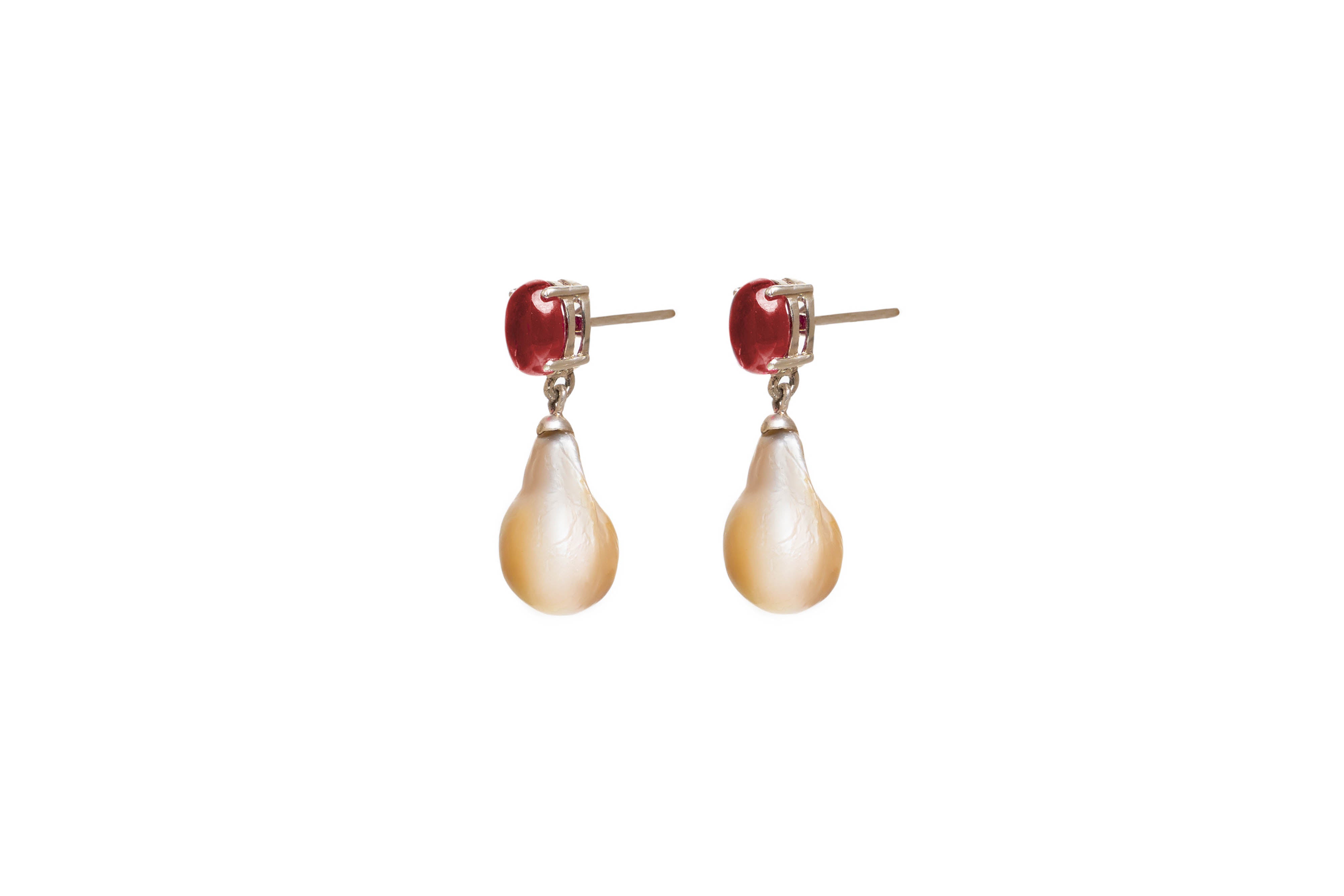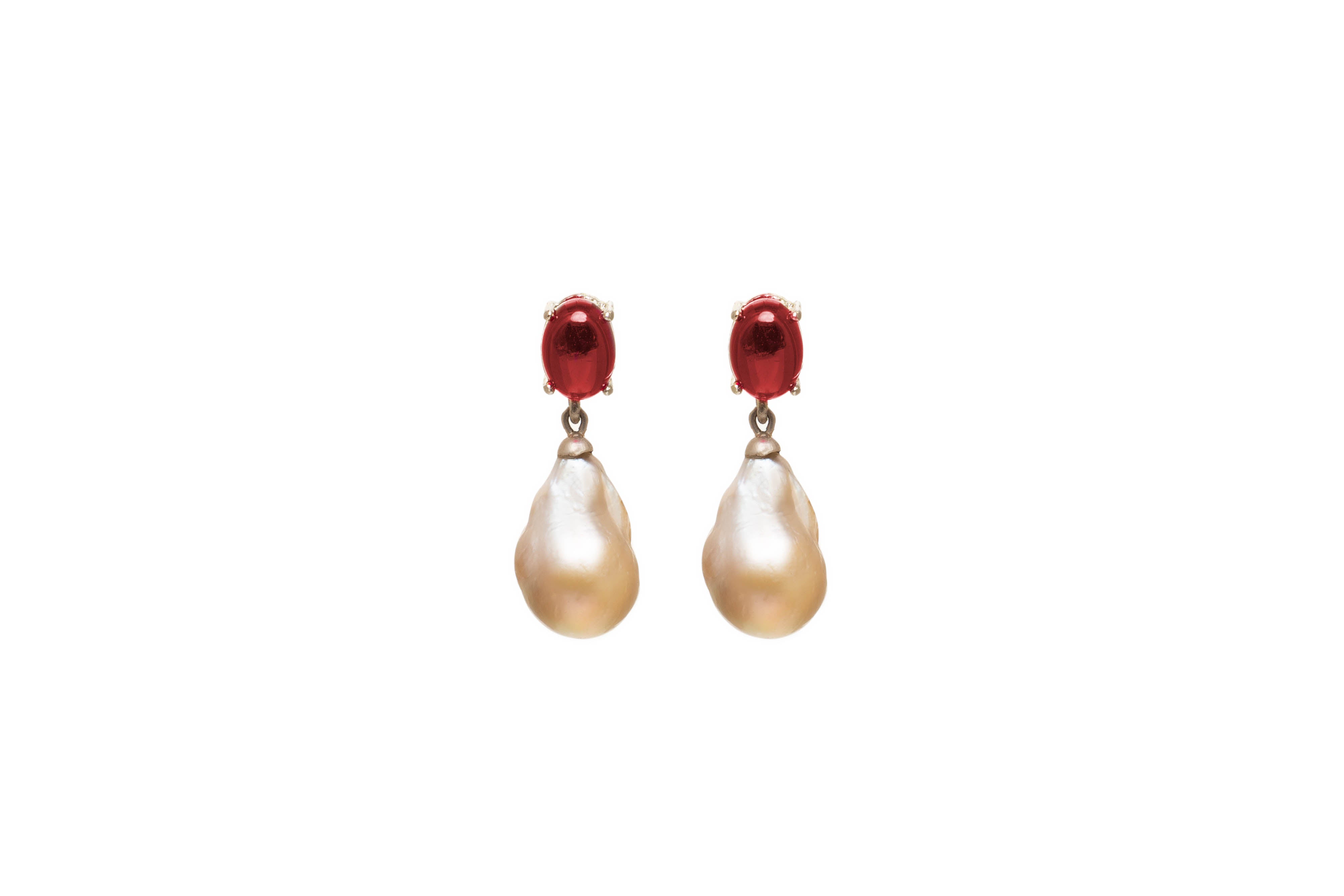 Baroque earrings with a ruby like stone combine artistry and passion in a captivating fusion. The baroque design, known for its irregular and unique shapes, adds a touch of artistic flair to the earrings, making each piece a work of wearable art.