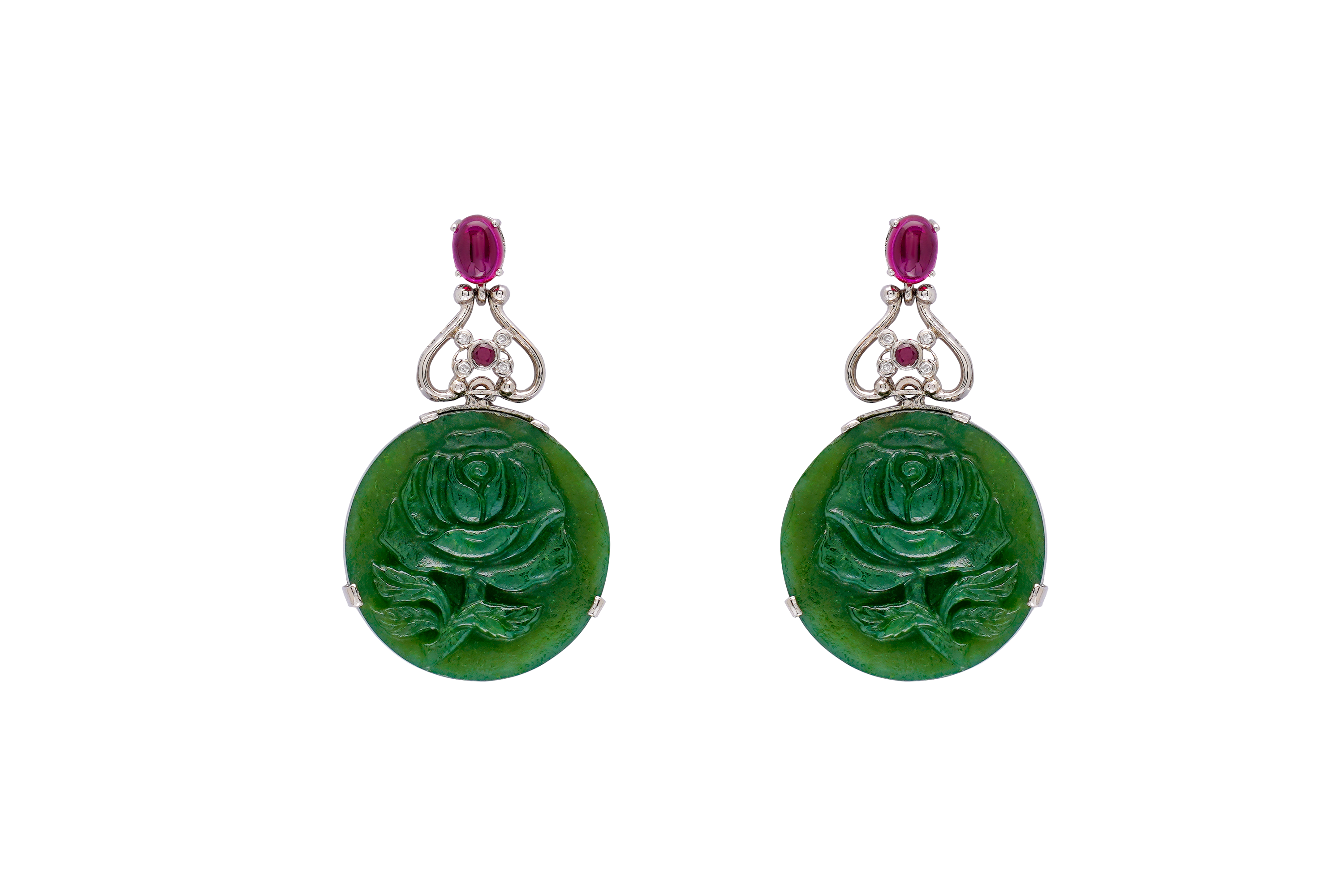 “Gold is valuable but jade is priceless.” In the spirit of this ancient Chinese proverb, these stunning jade and ruby earrings are made for the woman of substance. The woman whose value never needs to be said, but is always understood.