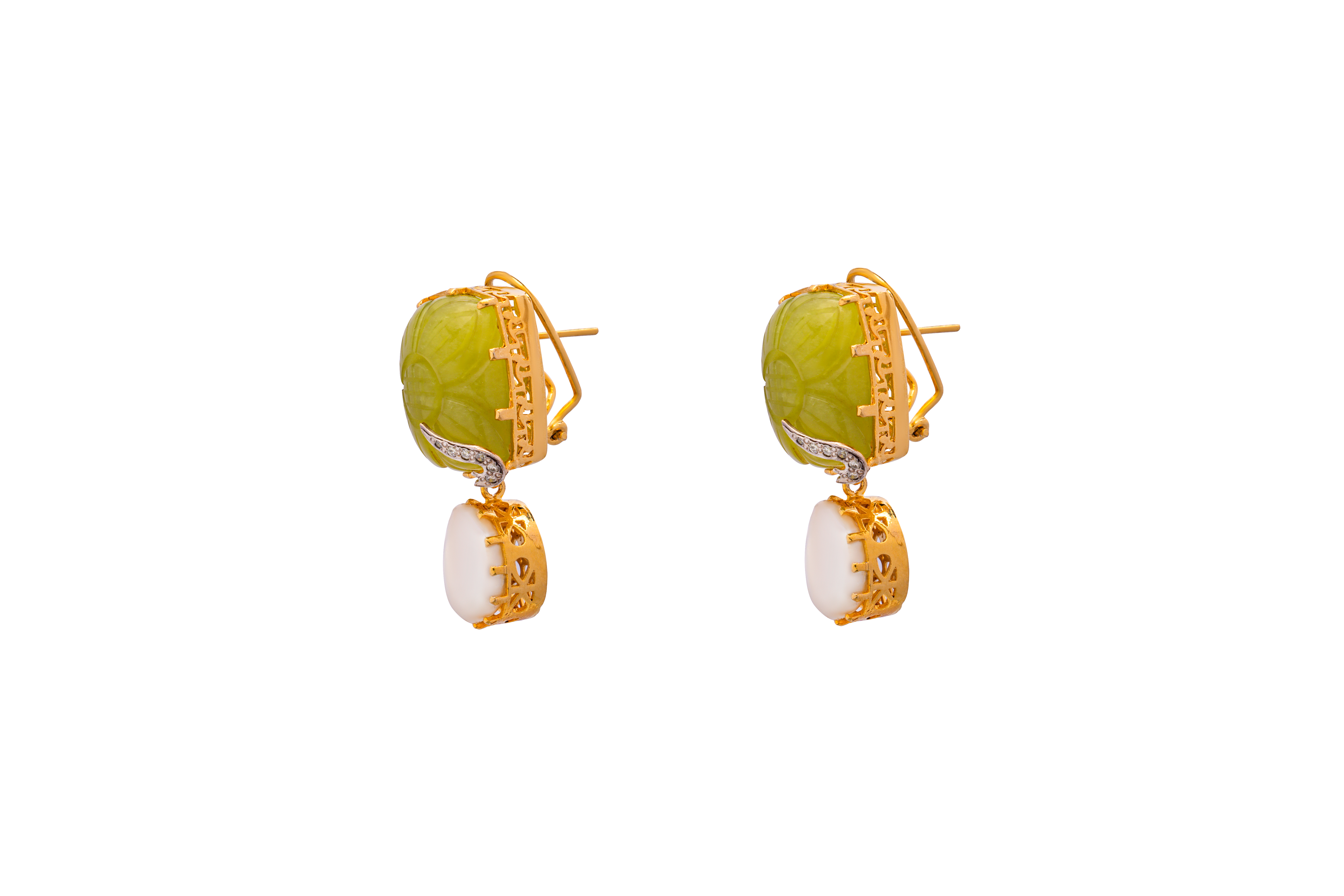 Dazzling earstuds in hazel green serpentine crystal, enthralling the affection of fresh leaves,