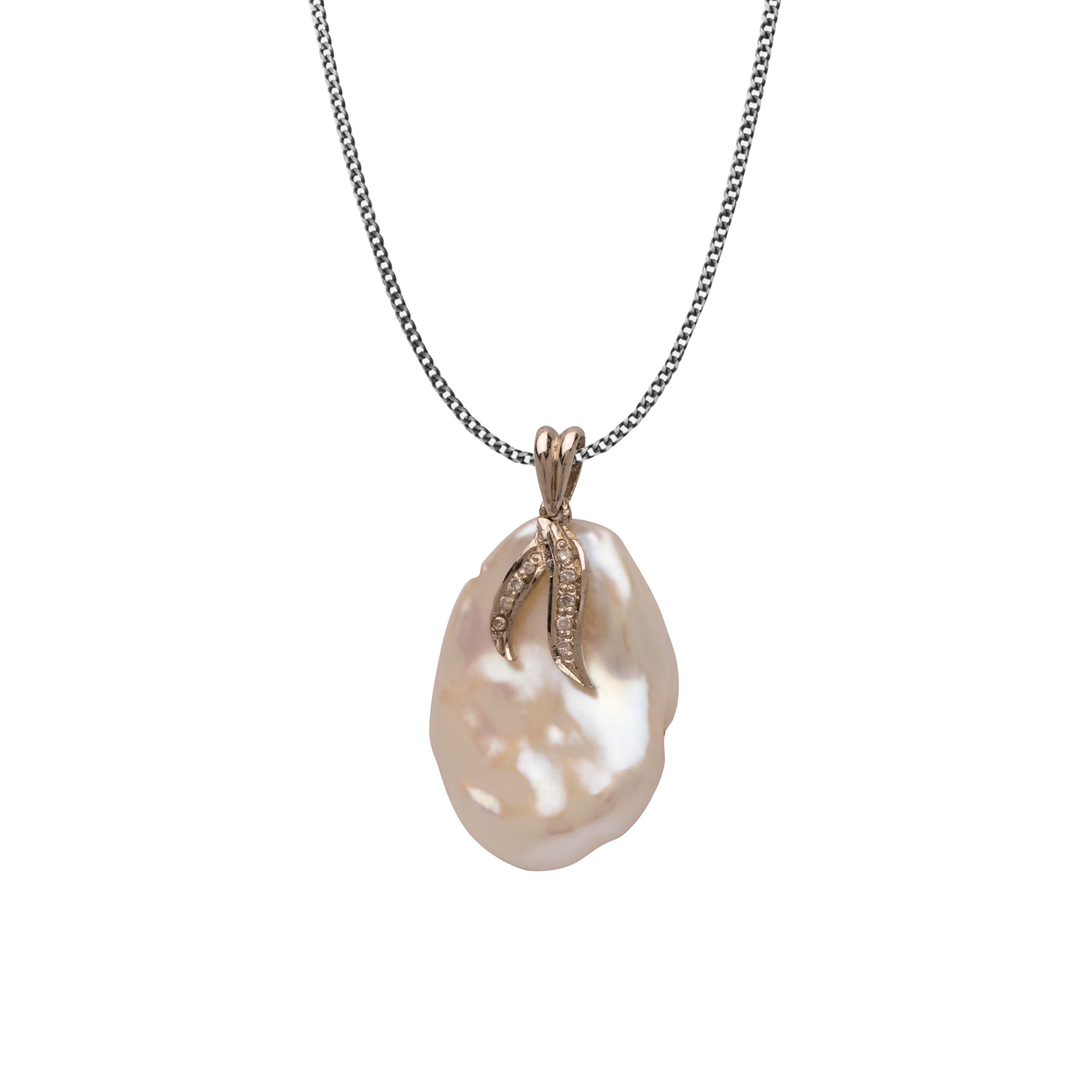sparkling diamonds studded in pure sterling silver wrapped around the pearl.