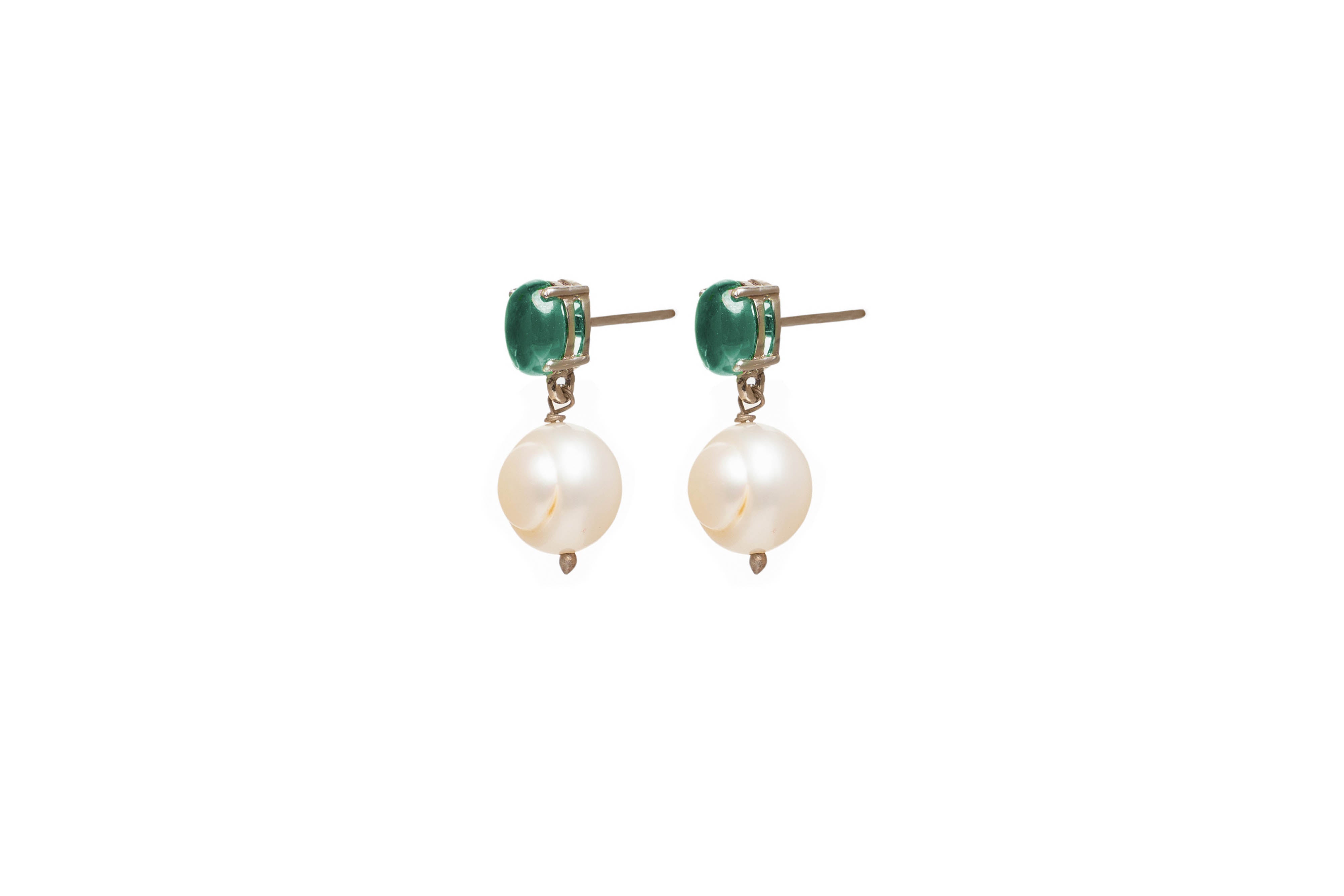 Drop pearl earrings with a green stone offer a captivating and harmonious combination of classic elegance and natural charm. The drop pearls, with their teardrop-shaped form, exude a timeless and graceful allure.