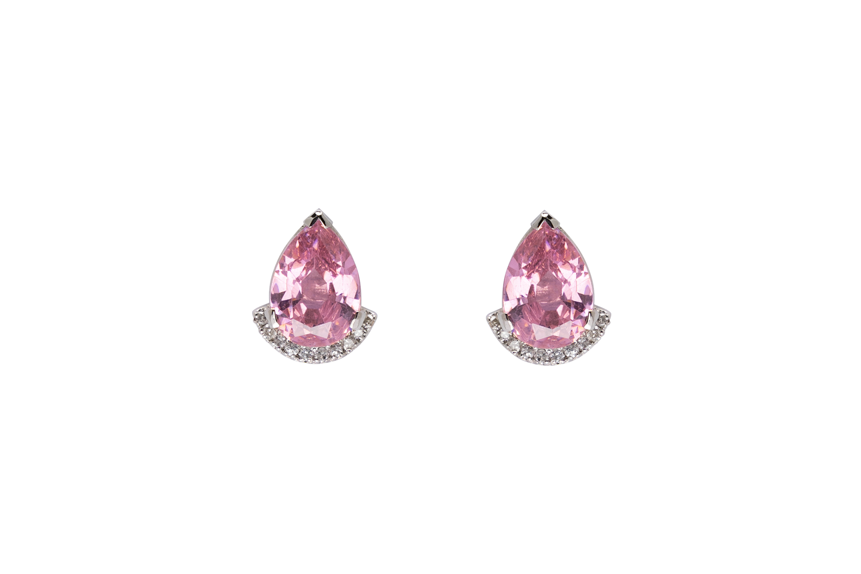 Our pear divine earrings in a rosy color give you the best of both worlds: the feminine exuberance of pink along with the magnificent shine of diamond. The pear shape of the pink stone is in vogue, while the timeless splendor of diamonds encircles you with love, wherever your pretty head may turn.