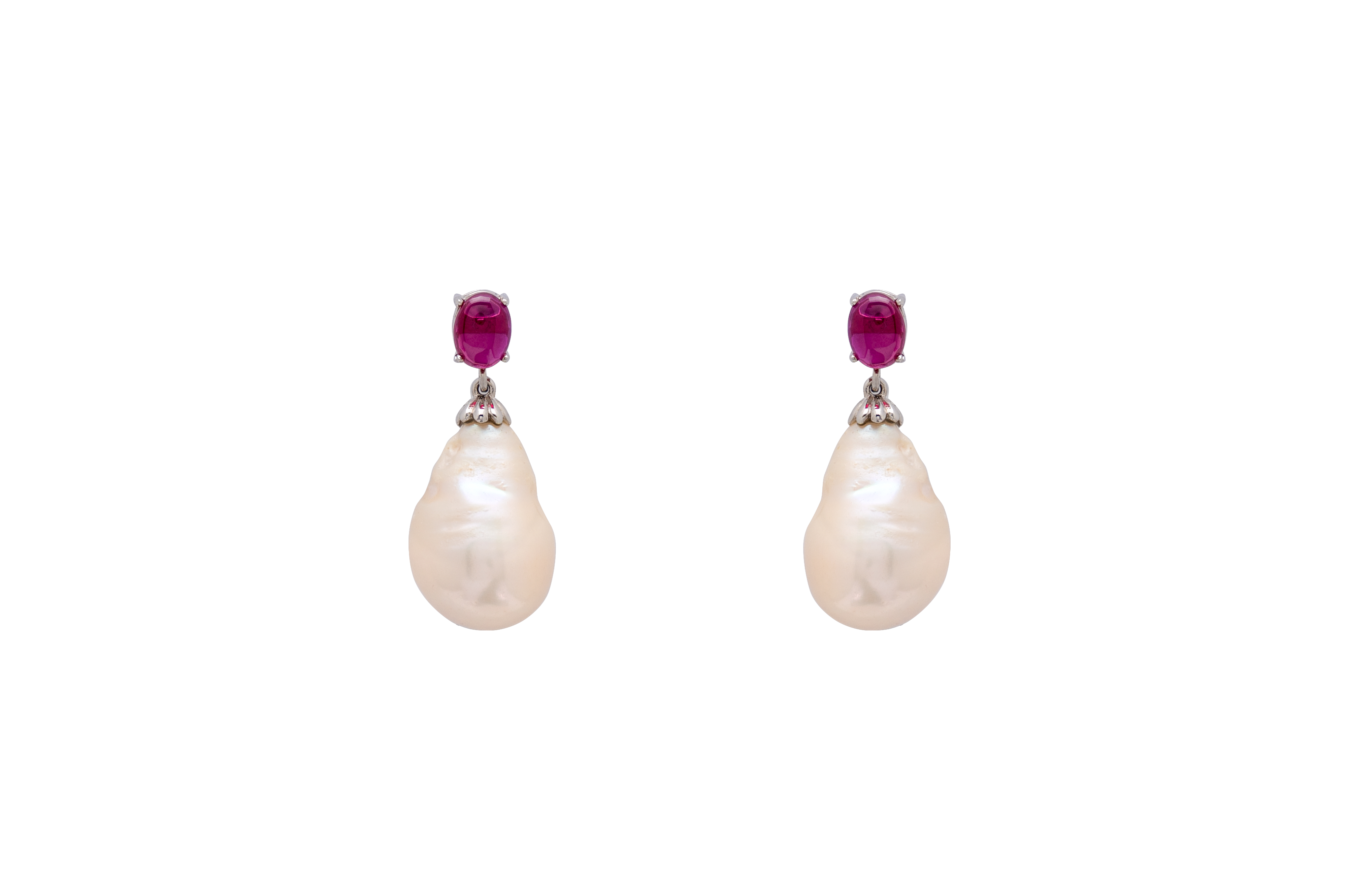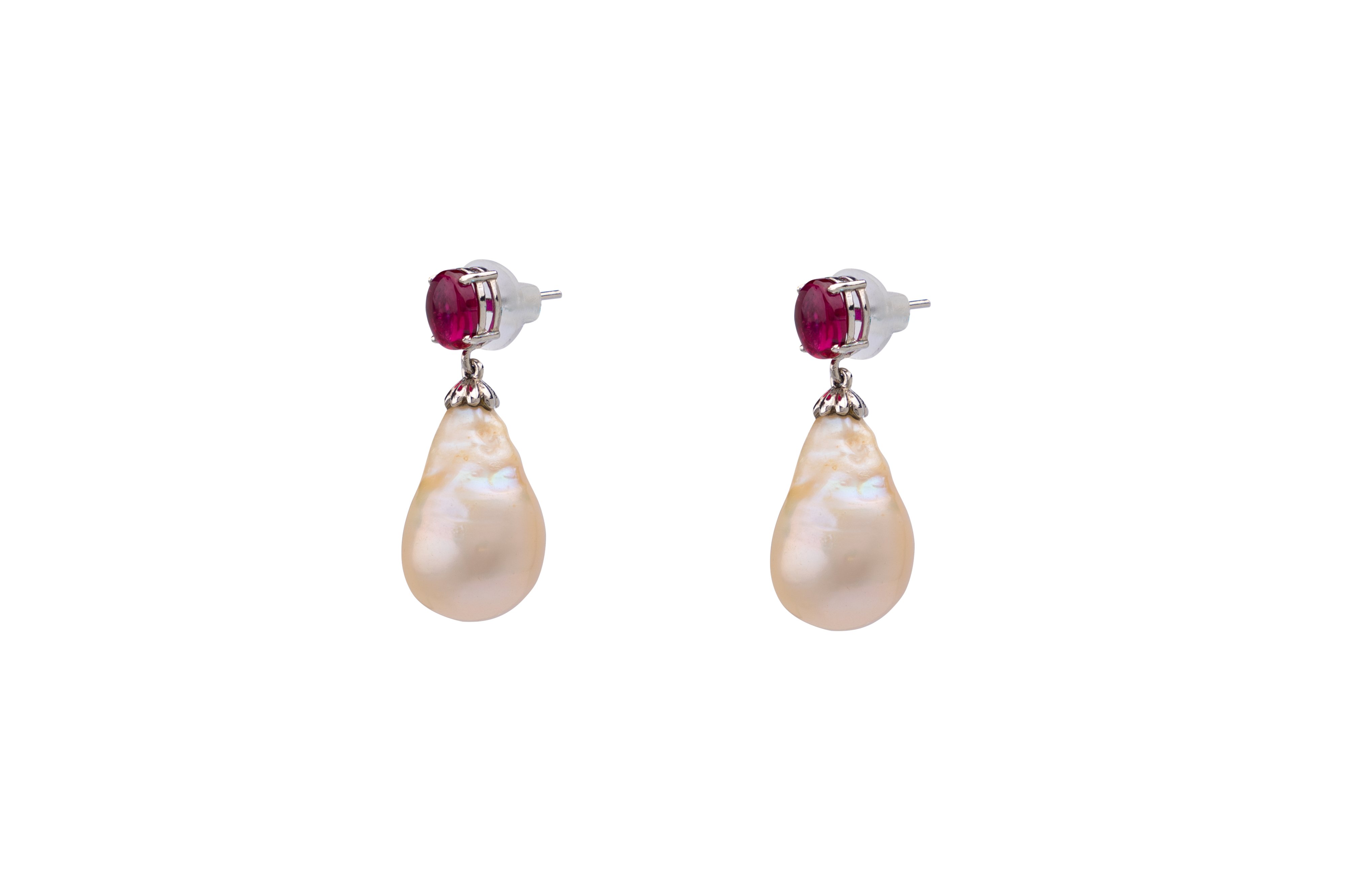 Much like the raw, untouched pearl that dangles in these gorgeous earrings. Its irresistible natural luster and shade is complemented by genuine ruby, which infuses a dark red luxury into these classic earrings, and makes your look perfectly balanced.