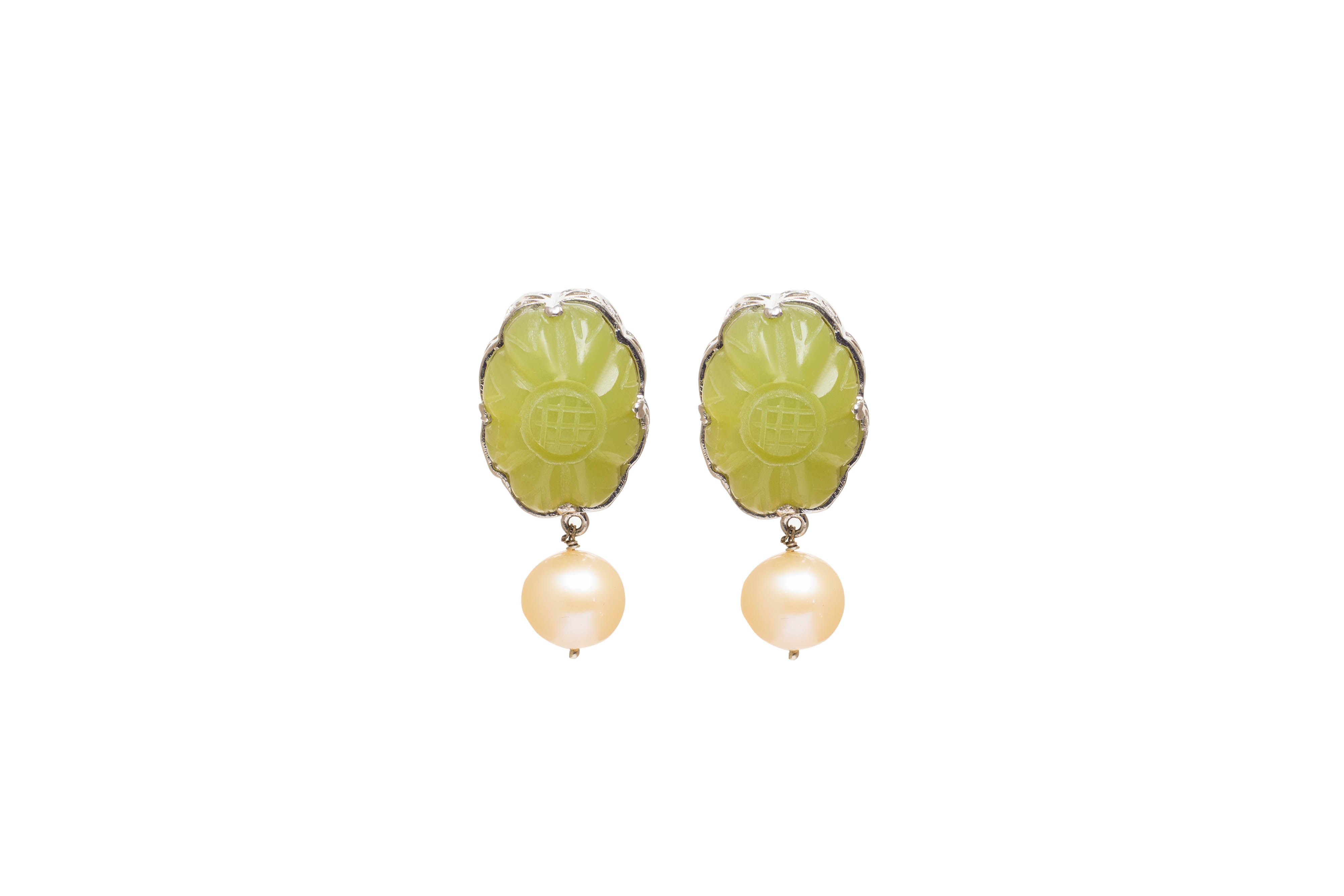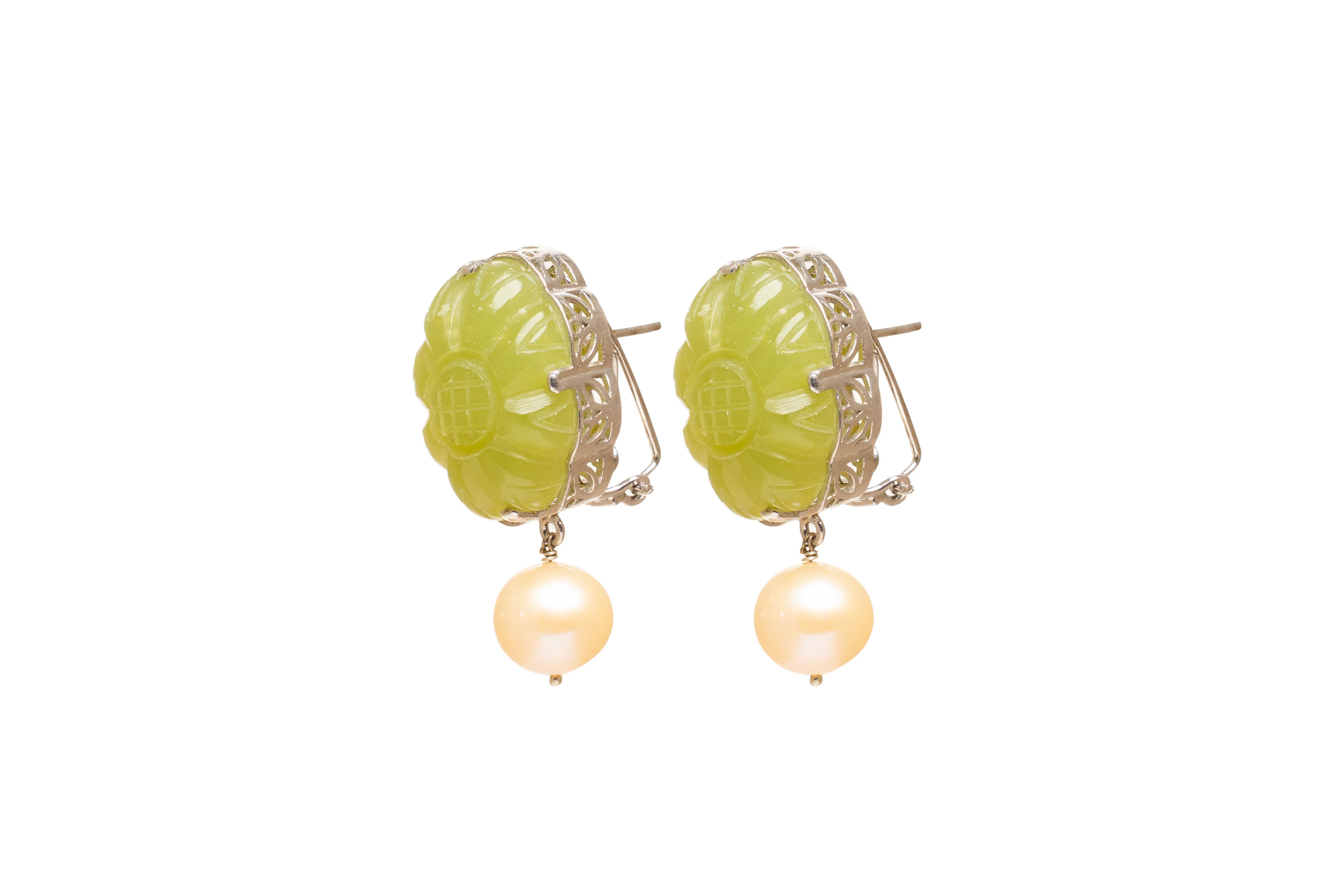 Whether you're dressing up for a special occasion or simply elevating your everyday style, these Carved Serpentine Flower Earrings with freshwater pearls in silver are the perfect choice. Embrace the allure of nature's beauty with a touch of elegance that transcends time.